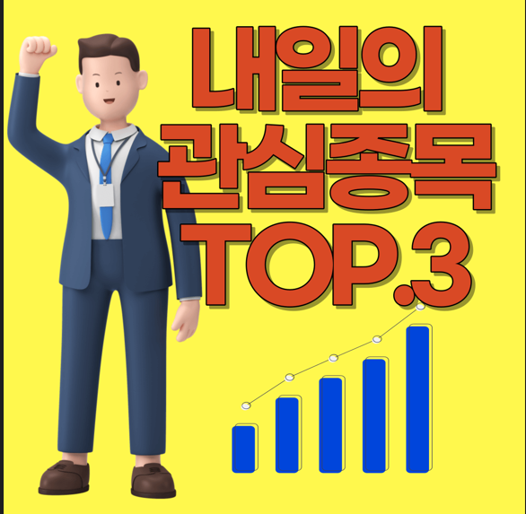2023-04-24일 월요일 장에서 관심을 가지고 봐야만 하는 종목 TOP3을 가지고 왔습니다.