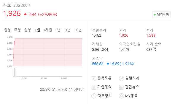 시가 물론 높게 시작하리라고 생각합니다. 하지만 생각보다 시황이 좋지 않아 5% 이내의 갭상승이 나온 다면 한 번쯤은 리스크를 감수하고 시가에 한번 도전해도 무방하다고 생각이 드는 종목이네요!