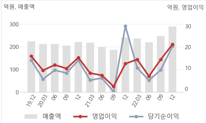 -2022년 4분기 실적 기준 영업이익 21.2억 원 기록 전년대비 77% 상승