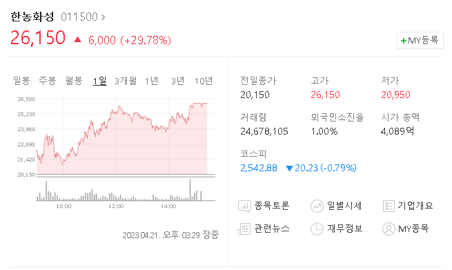 하지만 오늘 주목받은 점은 전고체 배터리에 대한 모멘텀이 있었기 때문입니다. 민관에서 전고체배터리에 20조 원 투자를 하겠다는 내용인데, 이 한농화성은 전고체 전해질 관련된 내용을 연구 및 개발 진행하고 있기에 아직 상용화 단계는 아닙니다만, 주가는 먼저 반영한 듯이 치고 올라가 주었네요! 추가로 52주 신고가를 달성해 주면서 신고가 영역에서 한 번 더 치고 올라갈 가능성을 염두에 두고 접근해 보시는 것도 나쁘지 않은 판단이라고 생각이 듭니다.