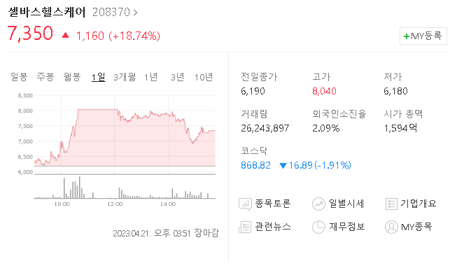 하지만 최근 유상증자라는 악재속에서 갭하락을 시원하게 해 주면서 주가는 하락세를 보여왔는데요, 오늘 보란 듯이 상한가 터치까지 해주면서 오전장에서 빛을 보여줬습니다.