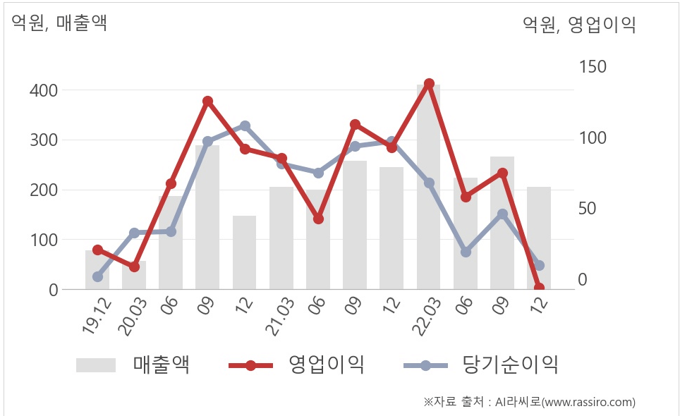 -2022년 4분기 영업이익 12억원 기록 전년 동기 대비 -33%감소