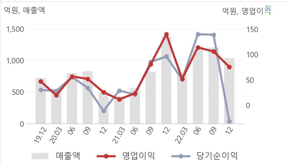 -매출은 직전 분기 대비 34%, 지난해 1분기 대비 58% 감소 영업 손실은 전 분기 대비 79% 늘어남.