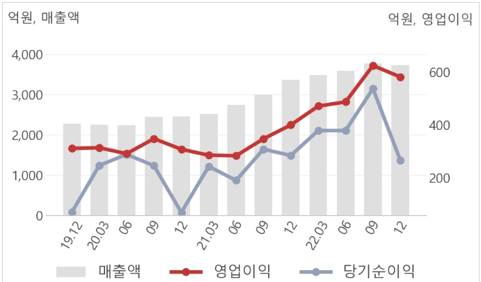 -2022년 기준 전년도 대비 꾸준히 상승하는 매출을 달성했다.