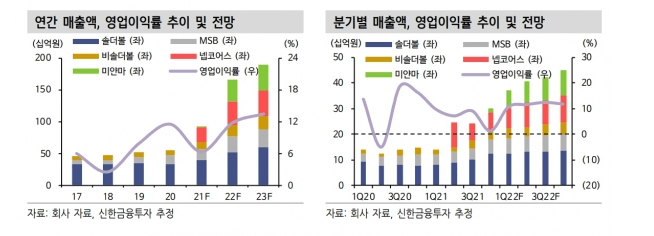-2022년 본업 예상 매출액은 857억 원 영업이익은 151억 원으로 추정