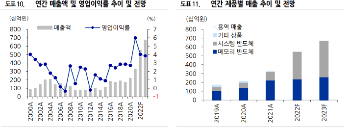 22년 3분기 기준 메모리 매출 43.2% 시스템 반도체 56.4%