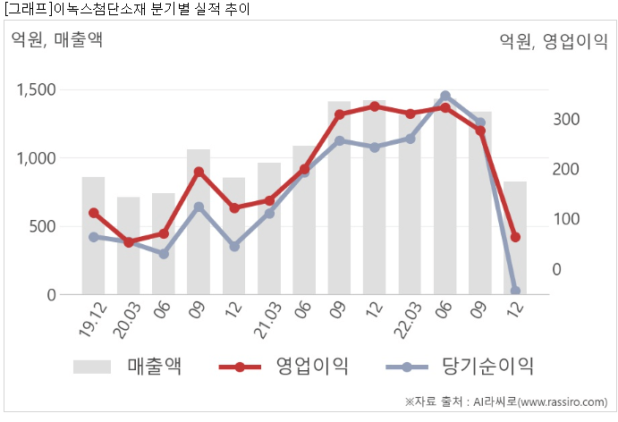 -2022년 4분기 기준 매출액은 822억 원으로 -42% 감소